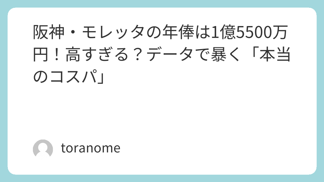 しかし、当ブログが独自のデータとシミュレーションを用いて検証した結果、この年俸は「高すぎる」どころか、阪神にとって「超がつくほどのお買い得(バーゲンセール)」であることが判明しました。